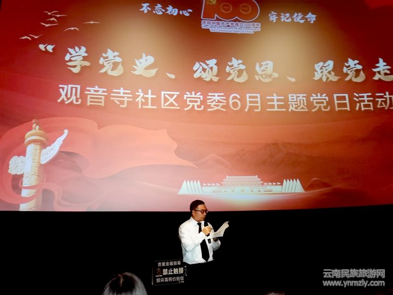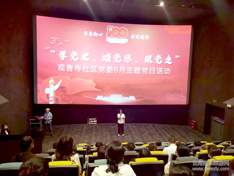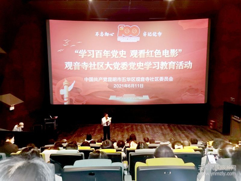 云南民族旅游網(wǎng)訊(記者尹達(dá)天 通訊員杜麗嬌)為慶祝中國(guó)共產(chǎn)黨成立100周年,重溫中國(guó)共產(chǎn)黨矢志踐行初心使命,回顧篳路藍(lán)縷奠基立業(yè)的光輝奮斗史,2021年6月11日下午,觀音寺社區(qū)聯(lián)合社區(qū)大黨委6家成員單位黨組織,90多名黨員,在吾悅廣場(chǎng)星軼影城開展“學(xué)習(xí)百年黨史,觀看紅色電影”黨史學(xué)習(xí)教育活動(dòng)。