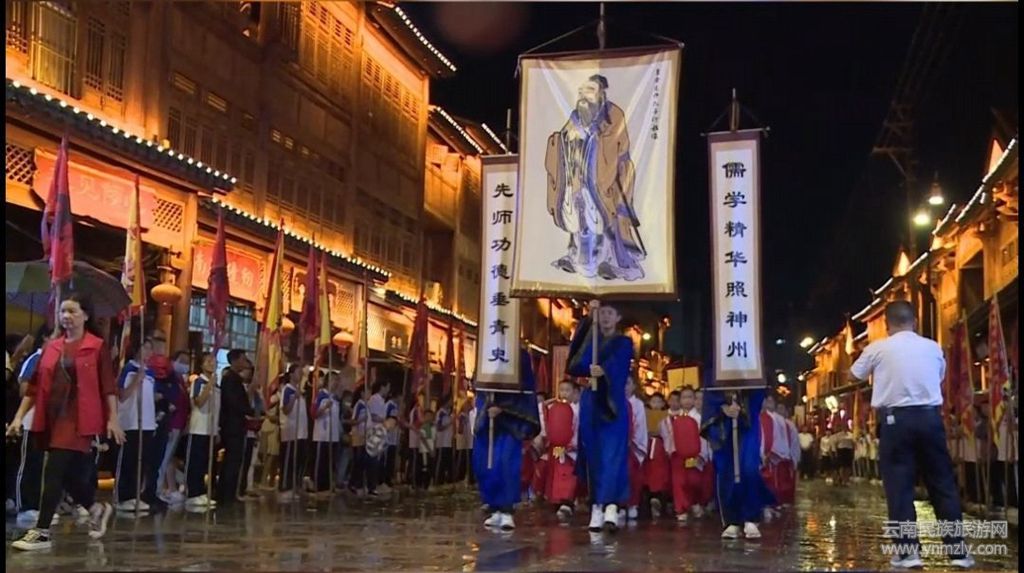 雖然天公不作美,但“相約游古城·緣來在句町”之“恭行拜師禮”系列活動,仍然引來近萬人游客駐足觀看參與。風聲雨聲讀書聲,聲聲入耳。