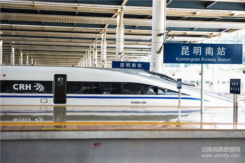 隨后,參加活動的領(lǐng)導(dǎo)和嘉賓走進站臺,共同為“七彩云南”保山騰沖旅游列車揭下幕布,車身描繪著“七彩云南”“保山騰沖旅游列車”等鮮艷標語和圖標的G1376次和諧號動車,在滿載乘客后,便從昆明南站駛出,一路向東,前往上海。