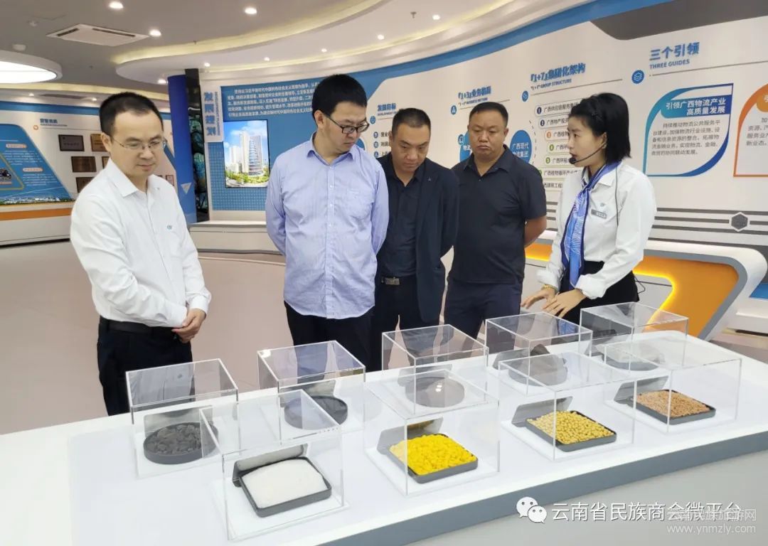 2022年10月24日,云南省民族商會(huì)會(huì)長(zhǎng)楊振,秘書長(zhǎng)王耀,會(huì)員單位代表陳星一行前往廣西供應(yīng)鏈服務(wù)集團(tuán)有限公司考察,在廣西物產(chǎn)國(guó)際貿(mào)易有限公司副經(jīng)理文政鋒的陪同下參觀了展示館。