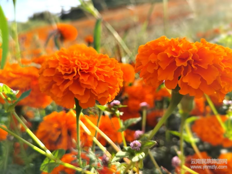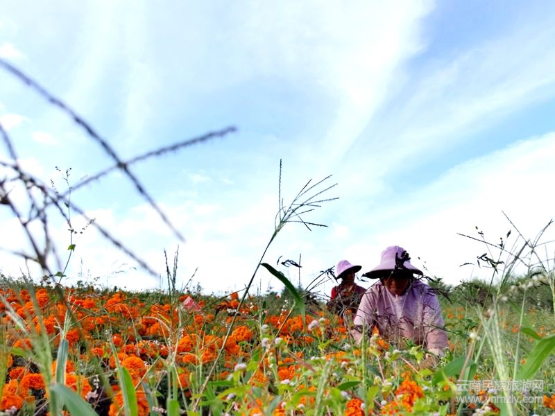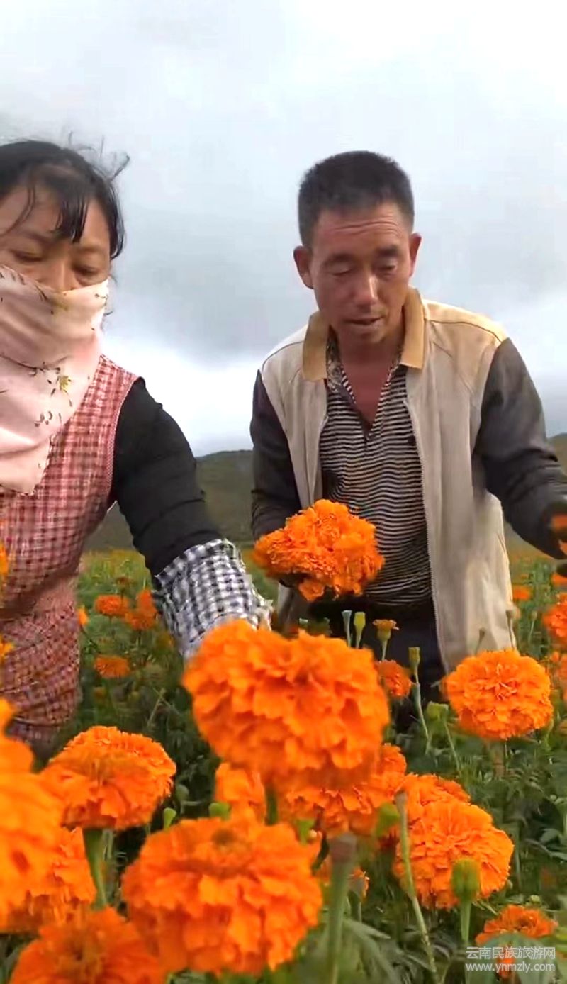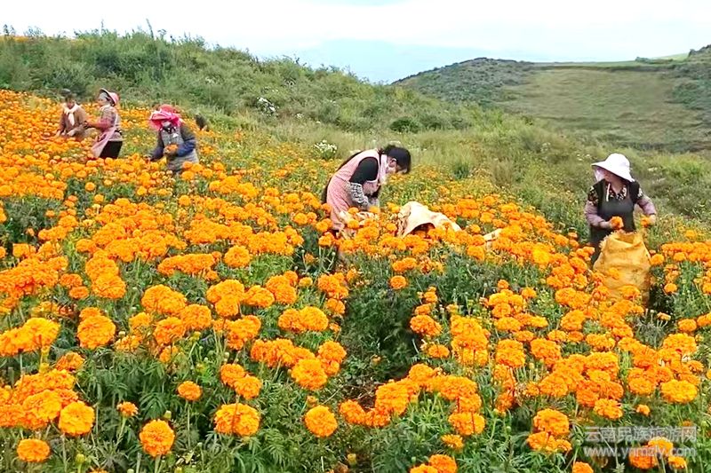 萬壽菊是一種特色經(jīng)濟作物,它所提煉出的葉黃素被廣泛的運用于食品、醫(yī)藥、化妝品和動物飼料。同時,萬壽菊花期長,與傳統(tǒng)經(jīng)濟作物相比,成活率高、田間管理簡單,產(chǎn)量高、收入可觀,集觀賞、藥用、環(huán)保等經(jīng)濟價值于一身,故有“軟黃金”之稱。