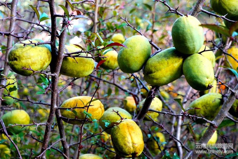走進(jìn)龍陵縣平達(dá)鄉(xiāng)安樂村,路邊隨處可見一棵棵木瓜樹,枝頭掛滿碩大、金黃色的白花木瓜。與其他果實(shí)不同的是,白花木瓜枝頭的樹葉并不旺盛,多是帶刺的枝干互相交錯(cuò),卻并不突兀,反倒顯得木瓜樹上的白花木瓜愈發(fā)碩大。作為海棠四品之一的木瓜,古時(shí)便有“投我以木瓜,報(bào)之以瓊琚”,以此來表達(dá)珍重情誼,懂得感恩。
