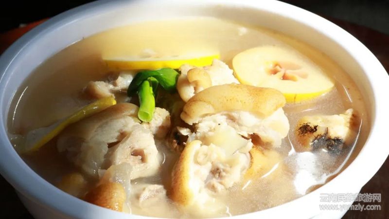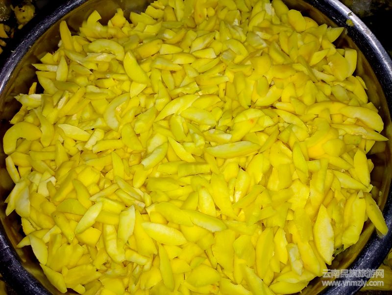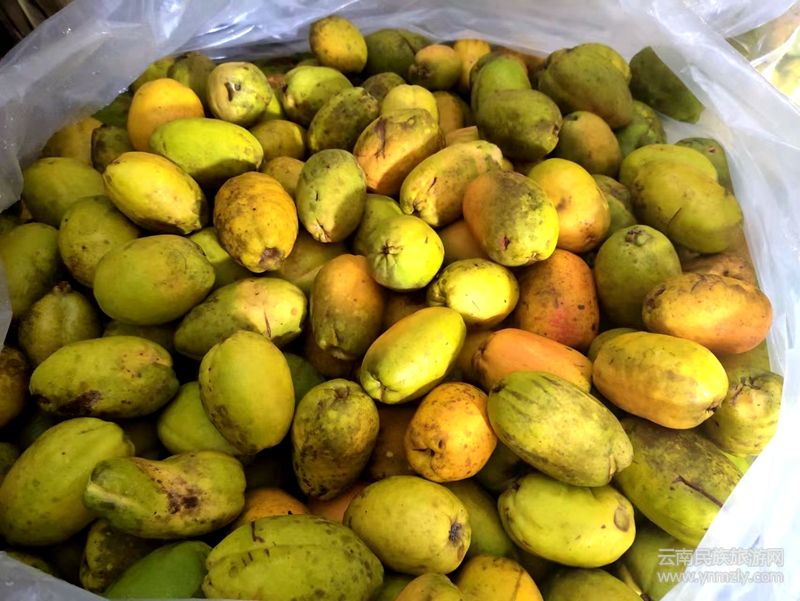 酸味是云南飲食文化中不可或缺的重要元素,因此云南人對酸木瓜的情有獨(dú)鐘也體現(xiàn)在飲食中,酸木瓜豬腳、酸木瓜煮雞、酸木瓜炒牛肉、酸木瓜拌蘿卜等等,都是平達(dá)人家庭飯桌上常吃的菜品。相比果肉較硬的酸木瓜品種,易削皮、果肉軟、香氣濃的白花木瓜更受人們的喜愛。
