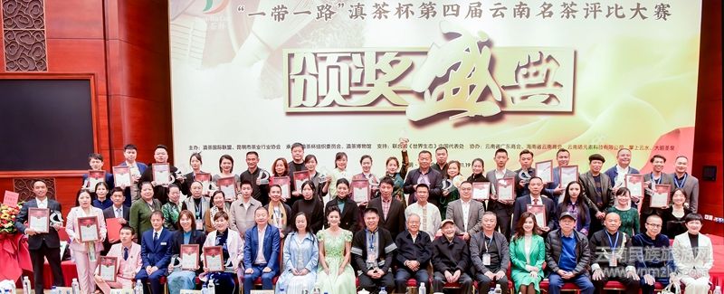 滇茶杯各茶類組別金象獎(jiǎng)“茶王”單位代表合影。