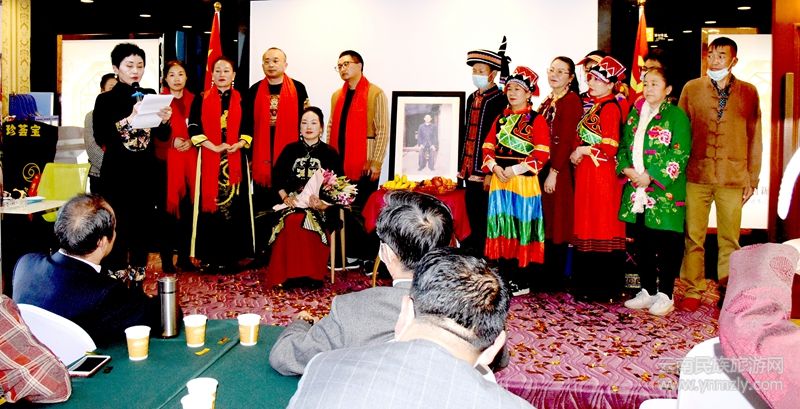 會上,還舉行了“彝族摸骨療法”非遺傳承人趙曼合女士收徒儀式