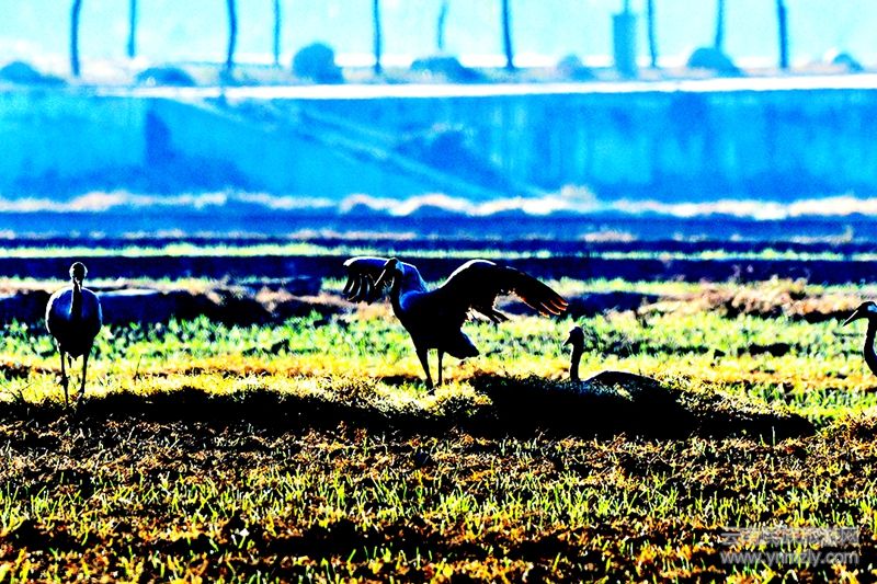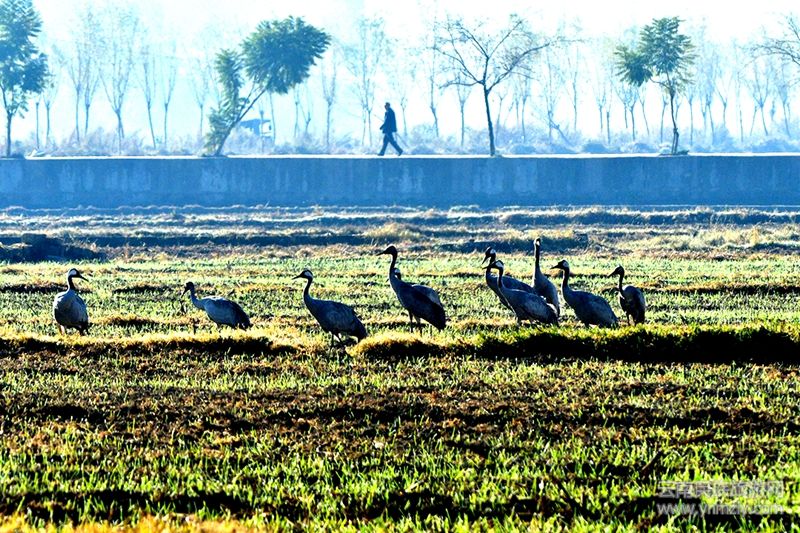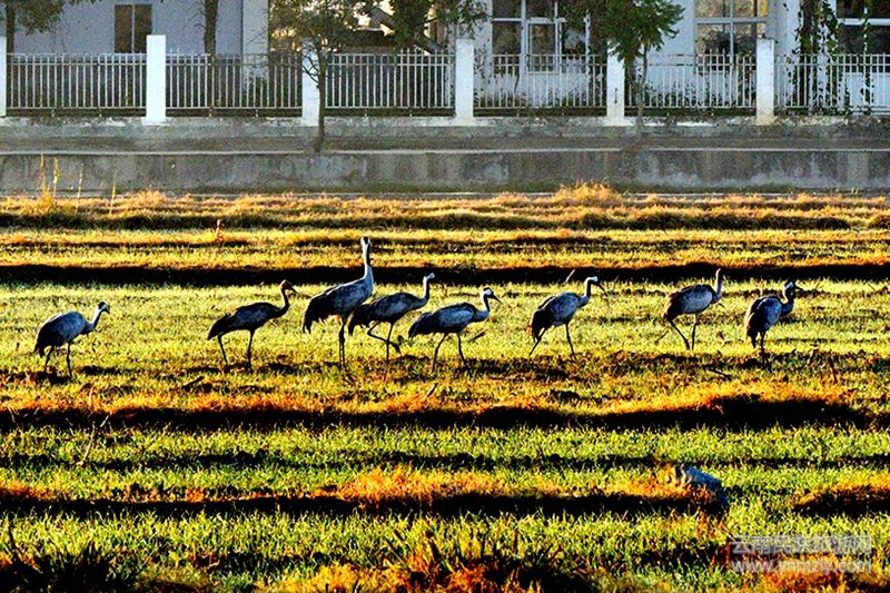 第一次拍到這么漂亮的灰鶴,袁自泰非常地激動和自豪,他每天早上都會去看看它們的生活情況,用相機(jī)定格各個(gè)美麗的瞬間。田野間,灰鶴群們一會兒在覓食嬉戲,一會兒從這一塊田飛到那一塊田,一副悠閑自在的樣子。不遠(yuǎn)處,晨跑的人們、出工的車輛來回穿梭,與田間覓食嬉戲的灰鶴勾勒出一幅人與自然和諧共生的美麗畫卷。
