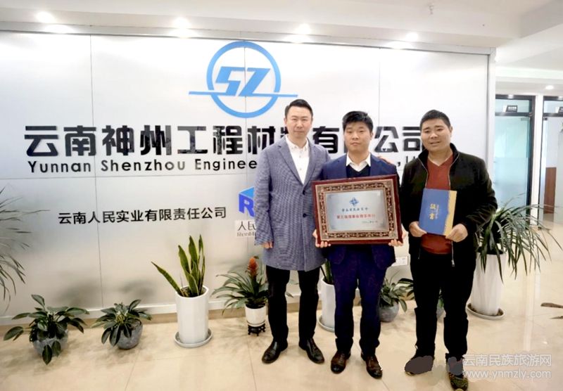 楊春繼為理事單位云南神州工程材料有限公司授牌。