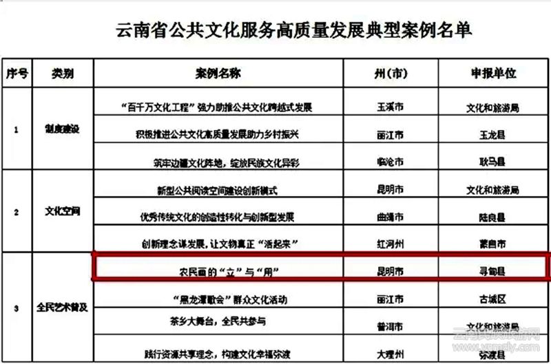 本網(wǎng)訊:日前,云南省文化和旅游廳、中共云南省委宣傳部、云南省發(fā)展和改革委員會(huì)聯(lián)合發(fā)布云南省公共文化服務(wù)高質(zhì)量發(fā)展典型案例。在各地遴選推薦的99個(gè)案例項(xiàng)目的基礎(chǔ)上,經(jīng)專家評(píng)審、公示,確定了《“百千萬文化工程”強(qiáng)力助推公共文化跨越式發(fā)展》等30個(gè)項(xiàng)目,作為云南省公共文化服務(wù)高質(zhì)量發(fā)展典型案例。