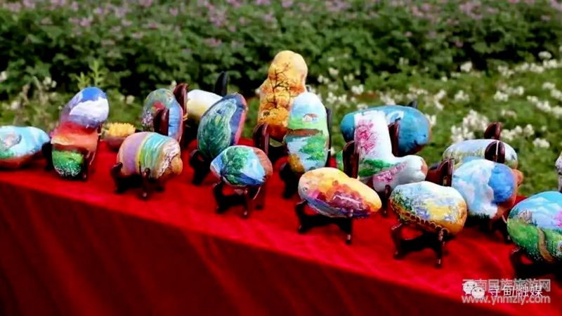 尋甸美術(shù)館邀請(qǐng)國內(nèi)知名農(nóng)民畫專家,對(duì)農(nóng)民畫創(chuàng)作群體進(jìn)行多輪培訓(xùn),逐步形成了一個(gè)以專業(yè)團(tuán)體為主的農(nóng)民畫創(chuàng)作群體,長期深入基層也讓藝術(shù)家們找到了在農(nóng)副產(chǎn)品洋芋上繪畫的樂趣,他們的彩繪讓洋芋出盡了風(fēng)頭。