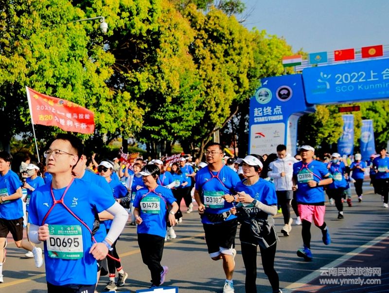 2022上合昆明馬拉松由上合組織秘書處、云南省人民政府、國家體育總局指導(dǎo),云南省體育局、云南省人民政府外事辦公室、昆明市人民政府主辦,共有18個國家和地區(qū)2萬余選手報名,最終共有獲得1萬名跑者獲得比賽資格,他們參加全程馬拉松、半程馬拉松、上合跑、上合親子跑四個組別的比賽。這是黨的二十大之后全國首開以馬拉松為紐帶的國際交流賽事,也是云南省三年來第一場大型馬拉松賽事。