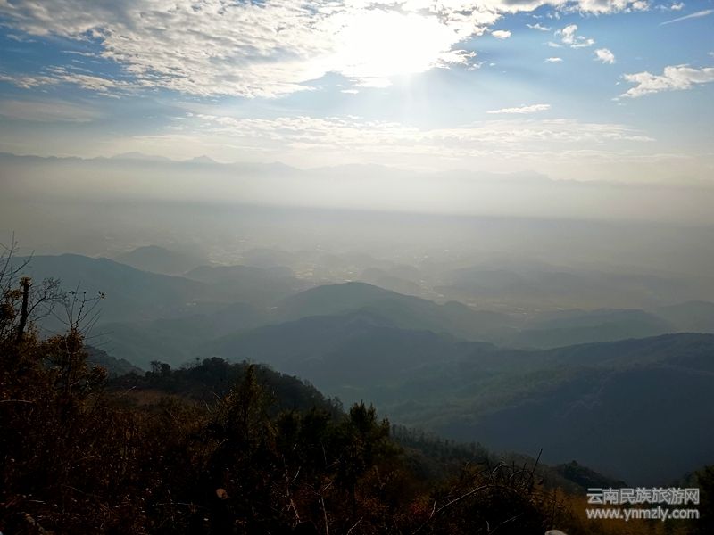 花臺山東、西兩面俯瞰界頭、固東壩,東、西、南三面環(huán)繞著濫觴于固東、界頭、曲石的龍川江支流,東、西、南、北四面環(huán)山。其北,七姊妹山比肩繼踵,其西,大地山依江而立,其南,大石門山、五峰巖山、筆架山等千山竟秀、圓潤飽滿,皆如八字散開,紛至沓來,眾星拱月般環(huán)護(hù)花臺山,形成“南山拱衛(wèi)”勝景。