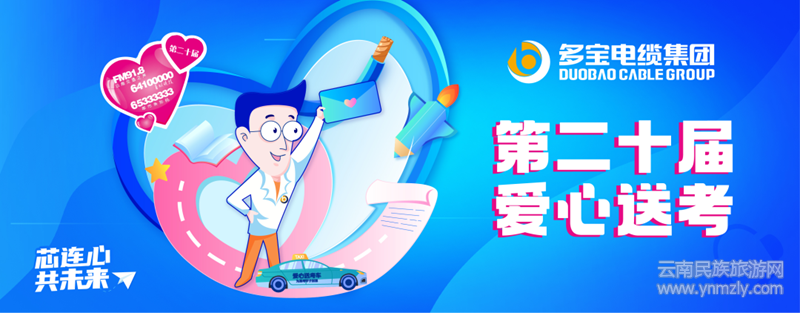 本屆愛心送考活動由云南多寶電纜集團股份有限公司獨家冠名,繼續(xù)由FM91.8云南交通之聲、都市條形碼、春城晚報共同發(fā)起,昆明市文明辦、昆明市公安局交通警察支隊、昆明市公安局公共交通治安分局、昆明市出租汽車管理局、昆明出租汽車協(xié)會、昆明市29家出租汽車公司、昆明公交集團聯(lián)合主辦,云南廣播電視臺FM88.7私家車電臺、FM105.8新聞廣播、全媒體新聞中心、新媒體中心等多家媒體共同參與聯(lián)動。
