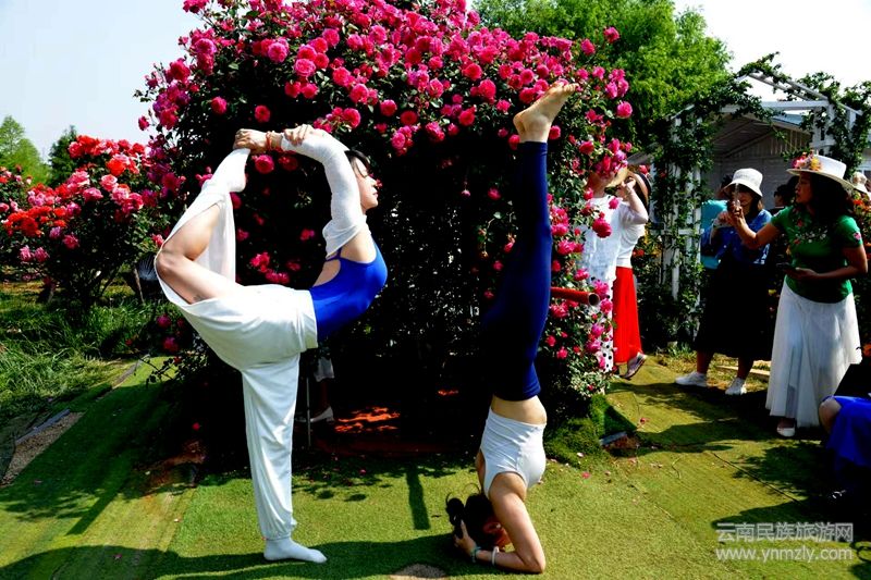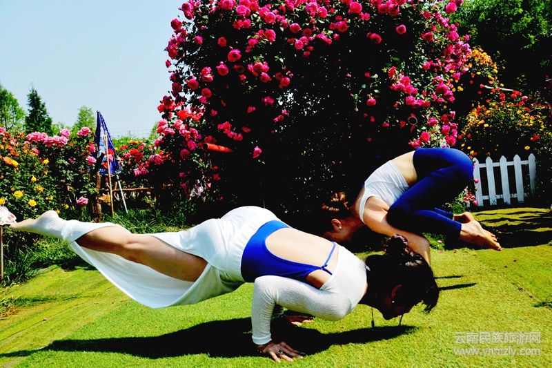 據(jù)了解、來(lái)自晉寧的兩個(gè)小美女,喜愛(ài)全反瑜伽健身活動(dòng).迎接美好的明天.在月季花公園展才華、與精彩表演吸引了眾多游客圍觀觀注,用手機(jī)抓拍晉寧女人展花枝、受到了群眾的歡迎和喜愛(ài).。(通訊員楊崇云攝影報(bào)道)