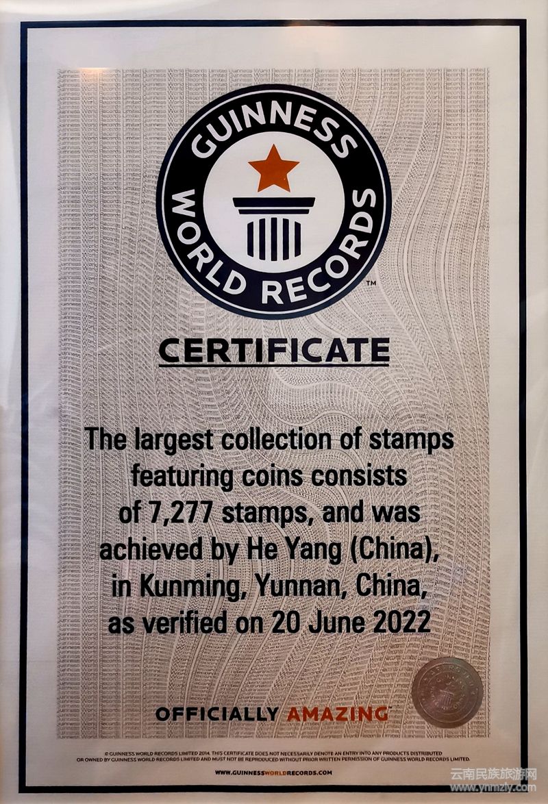 據(jù)了解,這是馬永明繼為迎接2008年奧運會來臨前收集整理展出“15183枚全套奧運郵集”和為迎接2011年昆明泛亞鄭和國際文化旅游節(jié)展出的“世界航海郵票”等郵集以來,又一次最大規(guī)模的集郵,據(jù)悉,經(jīng)過多年的努力,他精心收藏的世界錢幣郵票7277枚喜獲世界吉尼斯證書。