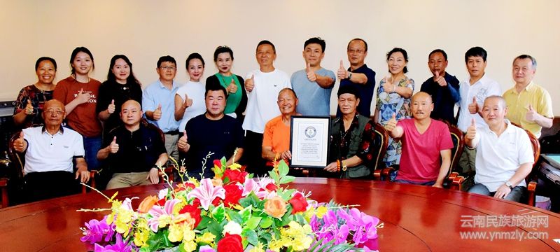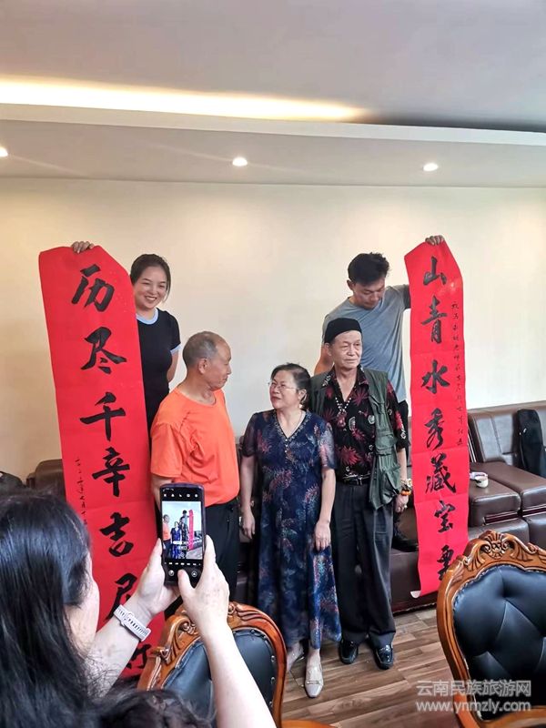云南知名書法家劉芳茹為馬永明題書寫了一幅對聯(lián):“山青水秀藏寶票,歷盡千辛吉尼斯。”并在現(xiàn)場將其贈送給馬永明對他獲得世界吉尼斯記錄表示祝賀。