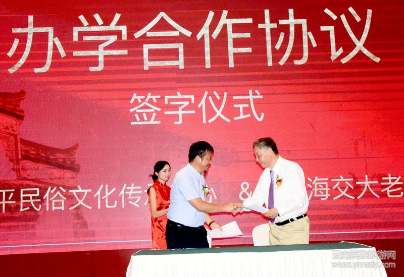 在熱烈的掌聲中,由云南省民營(yíng)企業(yè)家協(xié)會(huì)會(huì)長(zhǎng)花澤飛與上海交大老子書院院長(zhǎng)安強(qiáng)簽署了《戰(zhàn)略合作協(xié)議》。云南海平民俗文化傳承中心院長(zhǎng)海平老師與上海交大老子書院院長(zhǎng)安強(qiáng)先生簽署《合作辦學(xué)協(xié)議》。