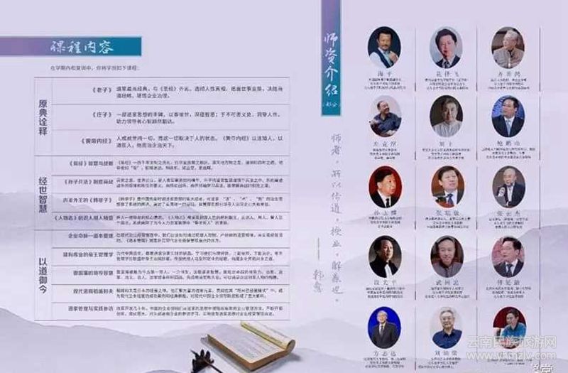 他還說,民族興旺,首在樹人;樹人之道,端在教育。為此,上海交大老子書院昆明分院將定期開展傳統(tǒng)文化講座,內(nèi)容包括中國(guó)民俗文化、中國(guó)術(shù)數(shù)天文歷法、中國(guó)孝道文化、中國(guó)道德文化、中國(guó)武術(shù)文化、古琴文化、書畫文化、茶道文化、香道文化交流等。內(nèi)容融匯了《二十四節(jié)氣》、《易經(jīng)》、《道德經(jīng)》、《了凡四訓(xùn)》、《弟子規(guī)》、《三字經(jīng)》、《論語(yǔ)》、《孝經(jīng)》、《老子》《莊子》、《孔子》、《孟子》《黃帝內(nèi)經(jīng)》、《古琴雅集》等中國(guó)傳統(tǒng)文化內(nèi)容。同時(shí)還將開設(shè)《道家思想與領(lǐng)導(dǎo)力提升》、《孫子兵法制勝商戰(zhàn)》等課程。