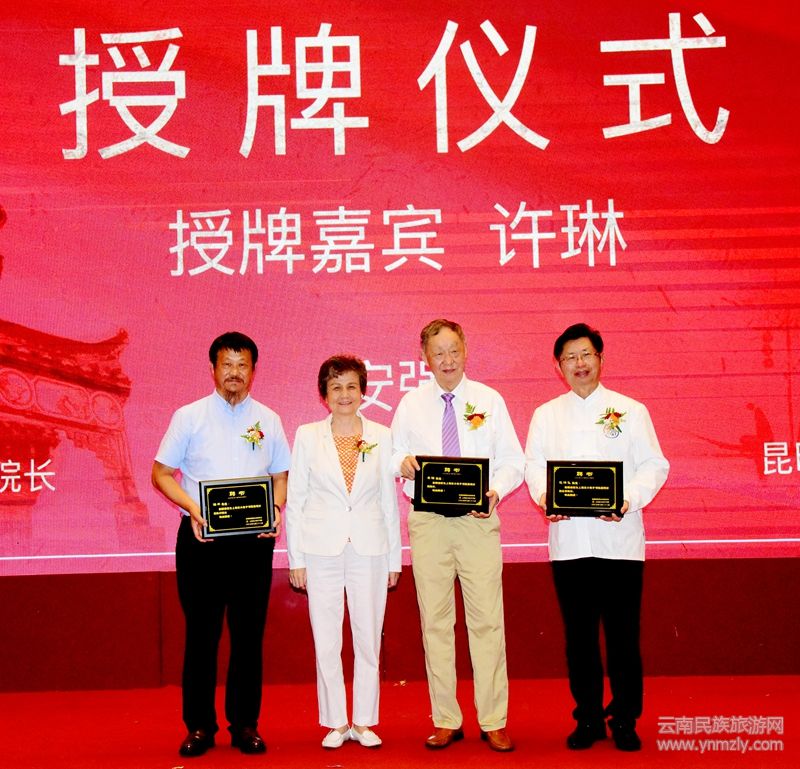 在接下來的授牌儀式上,國(guó)務(wù)院原副部級(jí)參事,孔子學(xué)院原總部總干事許琳女士為花澤飛、海平、安強(qiáng)先生授牌。