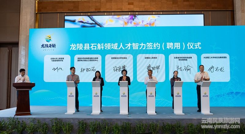 大會(huì)還舉行了龍陵縣石斛領(lǐng)域人才結(jié)對(duì)共建儀式、人才智力簽約(聘用)儀式和龍陵縣省委、市委、縣委聯(lián)系專家金融授信儀式、“蘭科化妝品原料資源開發(fā)共建中心”“石斛盆花資源開發(fā)利用共建中心”授牌儀式、“云南省農(nóng)業(yè)科學(xué)院鄉(xiāng)村振興示范點(diǎn)”授牌儀式、龍陵縣石斛專家委員會(huì)受聘專家聘書頒發(fā)儀式。在石斛產(chǎn)業(yè)招商引資推介及項(xiàng)目簽約儀式上,還就《龍陵縣石斛農(nóng)文旅融合示范基地及產(chǎn)品研發(fā)加工建設(shè)項(xiàng)目》《龍陵縣蘭科化妝品原料資源開發(fā)建設(shè)項(xiàng)目》《龍陵縣天然林有機(jī)石斛示范基地建設(shè)項(xiàng)目》《龍陵縣石斛花卉研發(fā)中心建設(shè)項(xiàng)目》4個(gè)項(xiàng)目進(jìn)行現(xiàn)場(chǎng)簽約。