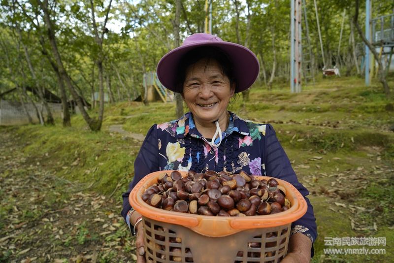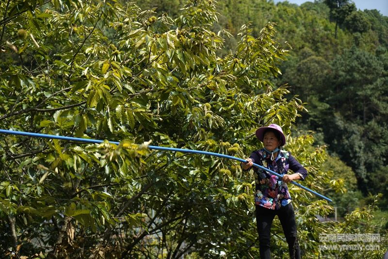 板栗產(chǎn)業(yè)不僅鼓起了群眾的“錢(qián)袋子”,還帶動(dòng)鄉(xiāng)村旅游,促進(jìn)了農(nóng)旅融合發(fā)展。在觀音山栗園農(nóng)莊,200多畝連片的板栗林郁郁蔥蔥,枝頭上一顆顆栗果撐破栗蓬,露出“笑臉”,工人們有的在敲打板栗樹(shù)上的果實(shí),有的穿梭在林間拾撿板栗。每年板栗成熟季節(jié),栗園農(nóng)莊的生意就很火爆,很多市民都會(huì)帶著家人、朋友到這里游玩,吃一頓農(nóng)家飯,體驗(yàn)一把拾撿板栗的樂(lè)趣,感受豐收的喜悅。