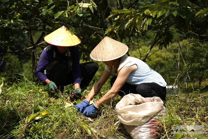 本網(wǎng)訊:眼下,保山市昌寧縣萬(wàn)畝板栗迎來(lái)收獲季,漫山遍野的板栗樹(shù)果實(shí)累累,沉甸甸的栗蓬掛滿枝頭,栗農(nóng)們穿梭林間采收板栗,一派豐收景象。
