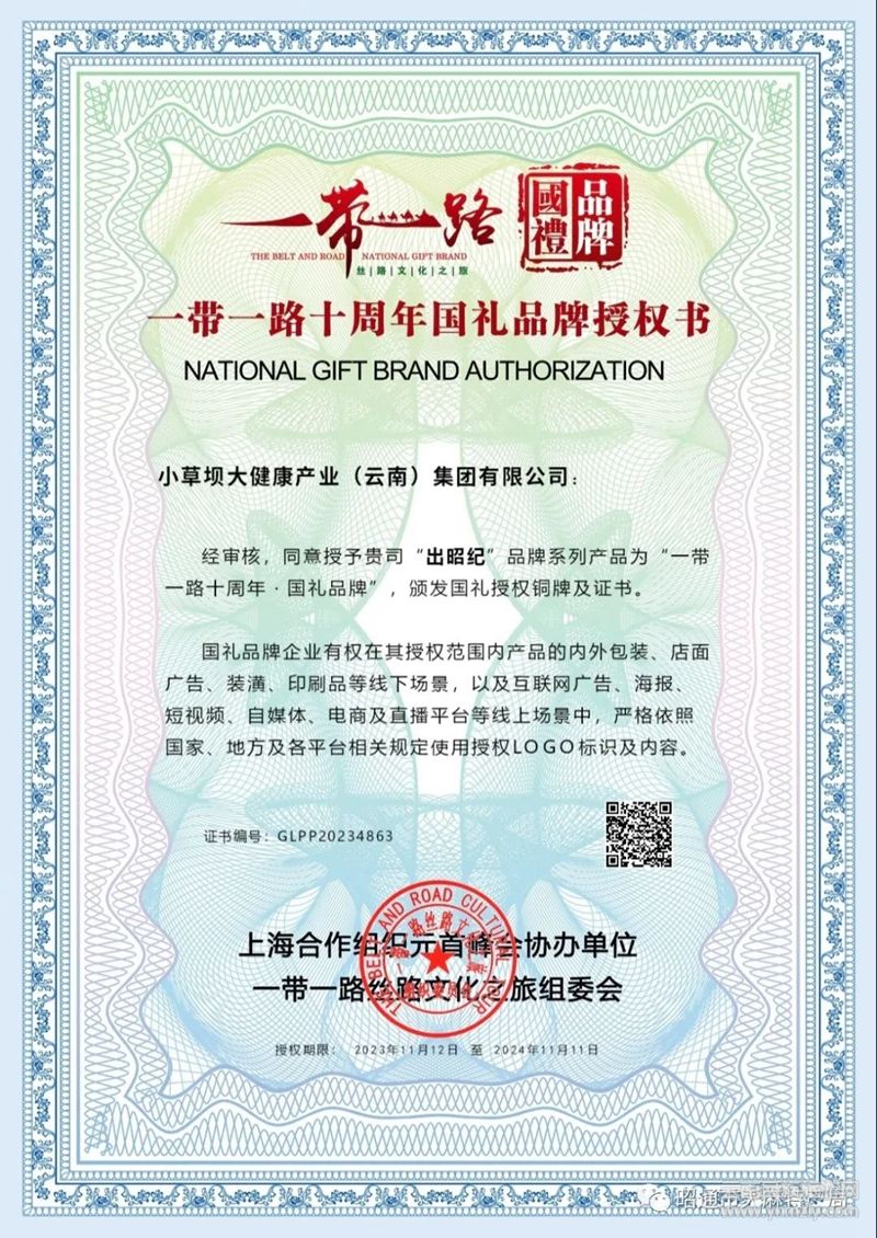 2020 年,一帶一路絲路文化之旅組委會(huì),聯(lián)合吉爾吉斯斯坦、烏茲別克斯坦等機(jī)構(gòu)共同推出一帶一路國禮品牌工程,旨在從各主要行業(yè)領(lǐng)域中,推選出具有代表性及良好用戶口碑的品牌企業(yè)及產(chǎn)品,入選“一帶一路中國國禮品牌”,贈(zèng)送一帶一路沿線國家政要,并推薦在中國國家名片——高鐵列車專題巡展。截止目前,國禮品牌工程先后與洋河夢之藍(lán)、中糧華夏干紅、正山堂、帥豐電器、大宋官窯、紅旗轎車、出昭紀(jì)天麻酒等眾多知名品牌合作。經(jīng)過十年的發(fā)展,“一帶一路”已經(jīng)成為當(dāng)今世界規(guī)模較大,也是中國較為重要的國際合作平臺(tái)。在“一帶一路”10 周年之際,一帶一路絲路文化之旅組委會(huì)發(fā)起“一帶一路十周年國禮品牌”活動(dòng),從各主要行業(yè)領(lǐng)域推選出具有代表性及良好用戶口碑的品牌及產(chǎn)品。“出昭紀(jì)·天麻酒”能夠榮獲“一帶一路十周年·國禮品牌”這一殊榮,再一次證明了出昭紀(jì)的品牌影響力及其企業(yè)小草壩大健康產(chǎn)業(yè)(云南)集團(tuán)有限公司在鄉(xiāng)村振興所作出的貢獻(xiàn),這是對(duì)出昭紀(jì)的認(rèn)可,也是將云南昭通天麻藥食同源大健康產(chǎn)業(yè)傳送到全世界的新紀(jì)元。