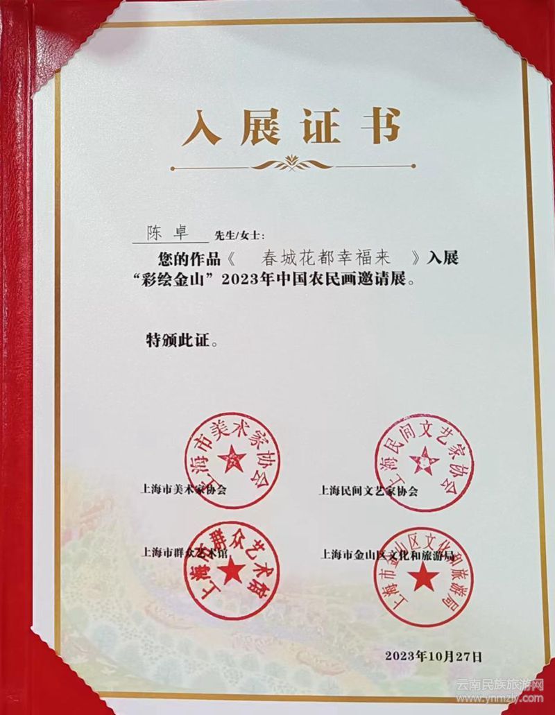 近期,官渡區(qū)農(nóng)民畫作者楊晶華、陳卓和莫暉的農(nóng)民畫作品,參加了由上海美術(shù)家協(xié)會、上海民間文藝家協(xié)會、上海群眾藝術(shù)館、上海市金山區(qū)文化和旅游局主辦的“‘彩繪金山’2023中國農(nóng)民畫邀請作品展”。當(dāng)天的民間繪畫創(chuàng)作班上,還給三位農(nóng)民畫作者頒發(fā)了榮譽(yù)證書。座談會后,大家還觀摩了部分農(nóng)民畫作品,并進(jìn)行了交流。