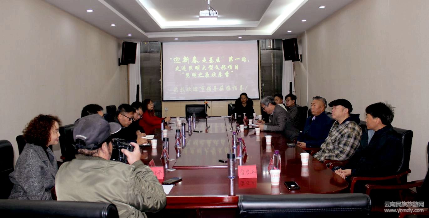 2024 年 1 月 21 日組織了首場(chǎng)“迎新春•走基層”活動(dòng)——走進(jìn)“昆明之夜歡樂(lè)季”項(xiàng)目。云南省、市相關(guān)職能部門領(lǐng)導(dǎo);昆明市新媒體協(xié)會(huì)秘書長(zhǎng)張永直;五華區(qū)政府招商顧問(wèn)、云南(昆明五華)國(guó)際人力資源服務(wù)產(chǎn)業(yè)園特別顧問(wèn)佘萬(wàn)衛(wèi);云南云上產(chǎn)業(yè)園區(qū)運(yùn)營(yíng)管理有限公司執(zhí)行董事陳紅星;云南云品企業(yè)孵化器有限公司總經(jīng)理?xiàng)钸B昆;滴灌通投資-云南財(cái)景公司合伙人楊麗華;云南省資深媒體人、攝影藝術(shù)家、云南民族旅游網(wǎng)及網(wǎng)易平臺(tái)執(zhí)行主編尹紹平;當(dāng)代文旅新媒體平臺(tái)主編雷啟玉等各界人士近 20 人參加。