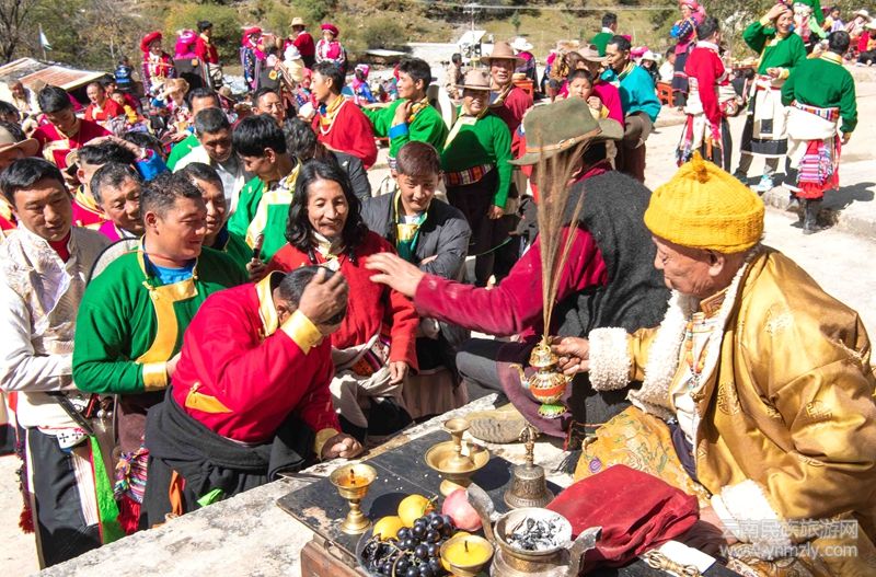 11、倉巴為人們送上圣水,為他們消災祈福,保佑全家幸福安康。