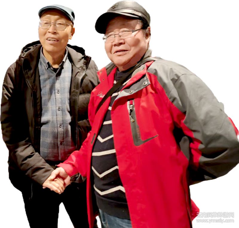 麗江市攝影家協(xié)會副主席、華坪縣攝影家協(xié)會主席(左)與云南民族旅游網(wǎng)主編尹紹平在展會上合影