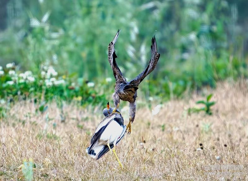 對這些灰頭麥雞感興趣的不僅是人類,處在食物鏈頂端的猛禽——游隼也聞風而來,在公園眾目睽睽之下偷襲這些遠道而來的鳥群,這一幕剛好被鏡頭記錄了下來。不幸落入游隼爪下的這只灰頭麥雞個頭不小,因為圍觀的人們未加干擾,游隼才吃力地將其帶走。游隼是國家二級保護動物,因其兇猛被譽為“空中霸主”,個頭不算大在空中卻罕有對手,甚至敢攻擊金雕、禿鷲、大鵟等體型巨大的猛禽。