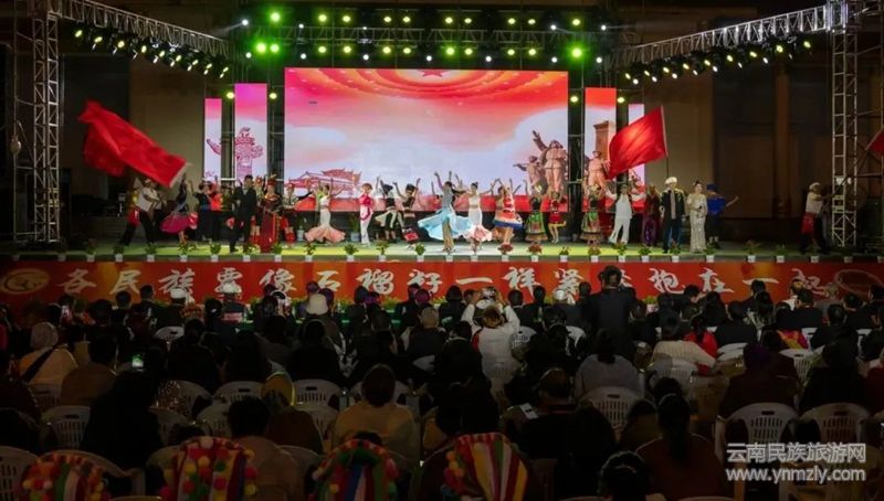 開幕式結(jié)束后,迎賓晚會在舞蹈《歡騰目瑙》中拉開帷幕,演員們身穿民族服飾,用歌舞演繹各民族團結(jié)友愛、共同進步的故事,展現(xiàn)了各族群眾積極向上的精神風貌和幸福美滿的生活狀態(tài)。
