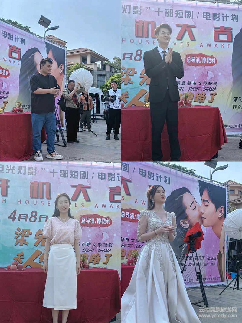 本網(wǎng)訊(文圖/張密 余迷)4月8日上午,由北京電光燈影業(yè)與云南短劇制作中心、云南猛牛影業(yè)共同發(fā)起的“電光燈影10部短劇和電影計劃”合作項目——首部短劇《梁先生,夫人她卷起跑路了》,在昆明海麗賓雅度假酒店舉行了開機(jī)儀式。