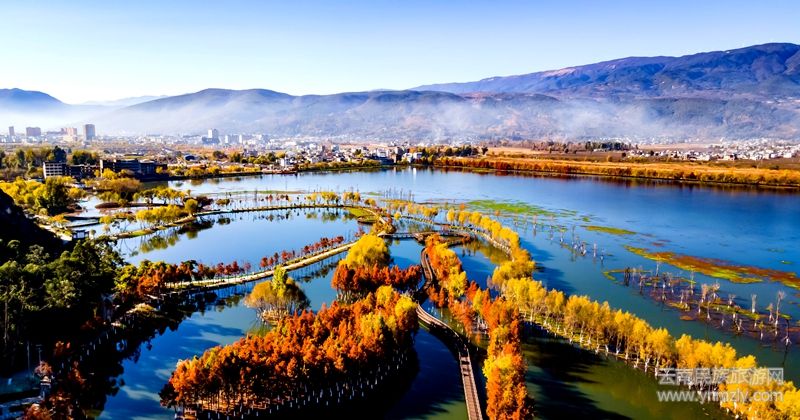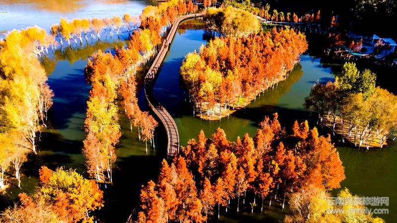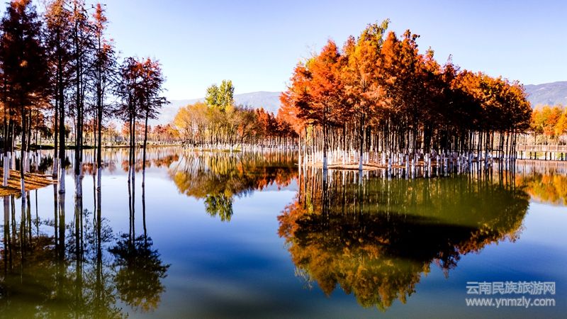 茈碧湖水杉美如油畫
