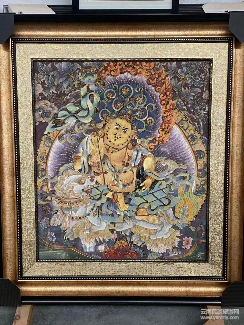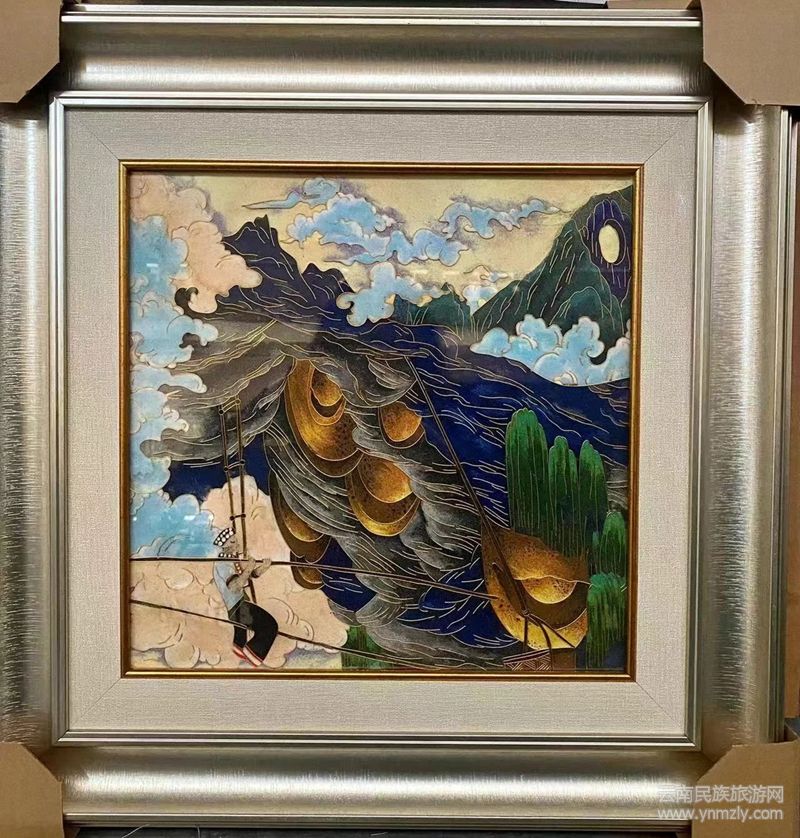 在學(xué)藝和傳承過(guò)程中,楊梓藝認(rèn)為,蘭坪有著得天獨(dú)厚的有色金屬資源,這為掐絲琺瑯彩畫(huà)提供了最自然而完美的原料。所以,她用蘭坪不同的礦石粉結(jié)合怒江、瀾滄江的沙,并堅(jiān)持將傳統(tǒng)工藝性和繪畫(huà)性完美結(jié)合,創(chuàng)作了一大批千年不會(huì)褪色的彩石沙畫(huà)??梢哉f(shuō)她用指尖“掐”出了家鄉(xiāng)美,也“掐”出了非遺技藝的詩(shī)與遠(yuǎn)方,令人贊嘆不已!