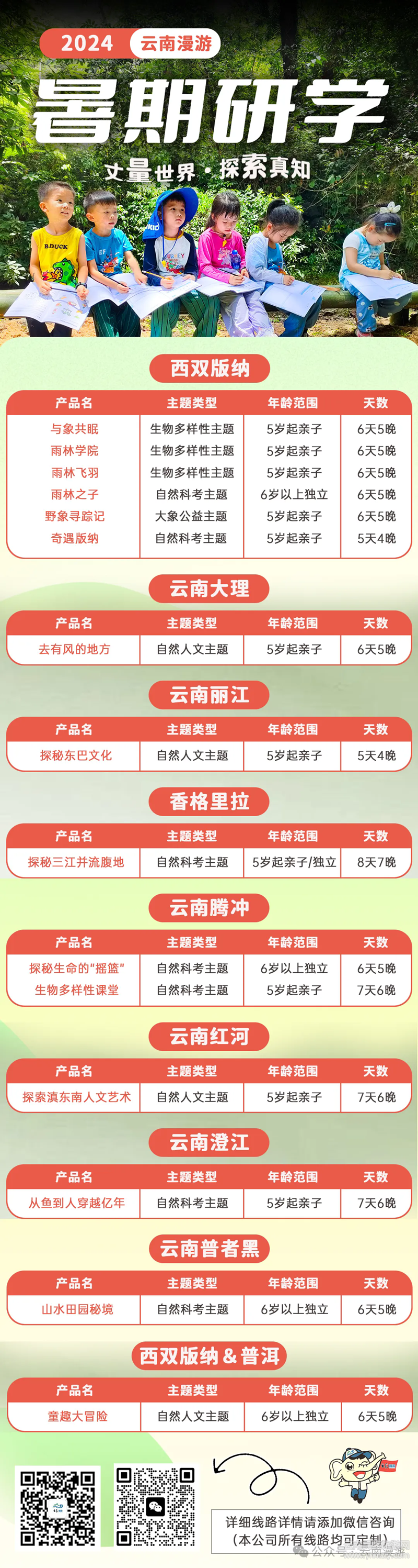 公司倡導(dǎo)親戶外,慢旅行的旅游方式,引領(lǐng)并提供專業(yè)化的體驗(yàn)式旅游服務(wù),并致力于云南文化旅游、研學(xué)游學(xué)、康養(yǎng)旅居、教育培訓(xùn)和戶外運(yùn)動(dòng)事業(yè)等相關(guān)項(xiàng)目的投資經(jīng)營(yíng)和創(chuàng)新服務(wù)。主要經(jīng)營(yíng)項(xiàng)目是自然教育游學(xué)、康養(yǎng)旅居游學(xué)、團(tuán)建拓展游學(xué)、畢業(yè)旅行游學(xué)、雨林鄉(xiāng)村茶山游學(xué)、營(yíng)地戶外游學(xué)服務(wù)等。