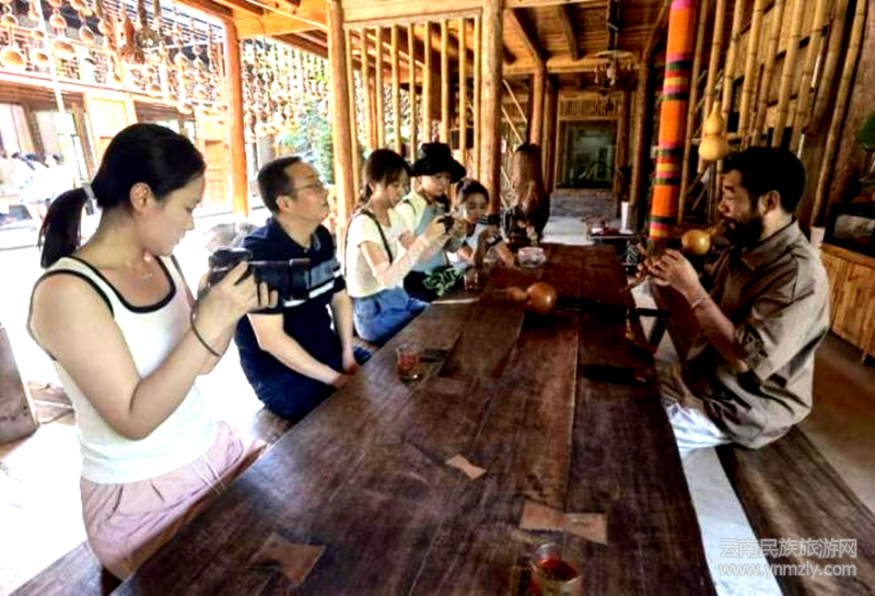 走進(jìn)葫蘆絲演奏家哏德全故居,調(diào)研團(tuán)隊(duì)了解到,哏德全不僅創(chuàng)作了《勐養(yǎng)江畔》《古歌》《思念》等一系列群眾喜聞樂(lè)見(jiàn)的優(yōu)秀作品,并且根據(jù)現(xiàn)代音樂(lè)理論和實(shí)踐改良了傳統(tǒng)葫蘆絲的制作和演奏技術(shù),擴(kuò)寬了葫蘆絲音域,提高了葫蘆絲的影響力,為中華優(yōu)秀傳統(tǒng)文化的“創(chuàng)造性轉(zhuǎn)化和創(chuàng)新性發(fā)展”提供了一個(gè)鮮活案例。在省級(jí)非遺傳承人哏從國(guó)葫蘆絲工作室,哏從國(guó)給師生介紹自己的創(chuàng)業(yè)歷程,回答了關(guān)于葫蘆種植、葫蘆絲制作、葫蘆絲演奏、葫蘆絲研學(xué)以及葫蘆絲的傳承與發(fā)展等一系列問(wèn)題。