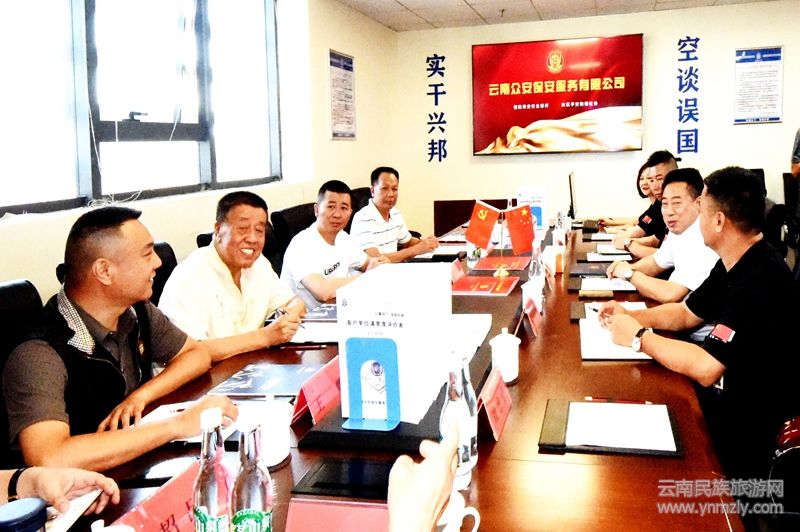 本網(wǎng)訊:為充分發(fā)揮黨建示范引領(lǐng)作用,提升黨建工作水平,切實(shí)加強(qiáng)黨組織間的交流與合作。8月27日,云南省石產(chǎn)業(yè)促進(jìn)會(huì)會(huì)長牛元周,黨支部書記趙曉強(qiáng)、秘書長王耀,副會(huì)長撒招呂,監(jiān)事長楊國興、監(jiān)事王樹東、辦公室王波等一行,前往云南眾安保安集團(tuán)公司參觀學(xué)習(xí)黨建工作。