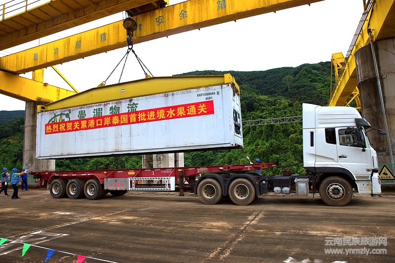 昆明海關(guān)副關(guān)長江興培在致辭時指出,去年泰國總理訪華期間提出“泰國高度關(guān)注水果、蔬菜等有關(guān)貨物通過泰北清盛港出口至云南關(guān)累港口岸輸華的問題”,昆明海關(guān)高度重視,主動與海關(guān)總署相關(guān)司局溝通、對接、爭取支持,在海關(guān)總署大力支持、云南省政府高位推動下,關(guān)累港口岸進境水果指定監(jiān)管場地順利建成并通過海關(guān)總署驗收,進一步拓展完善了關(guān)累港口岸功能,成為我國通過水運面向南亞東南亞國家進口水果的新航道,為我省培育新的經(jīng)濟增長點、落實“瀾湄合作”機制起到了積極促進作用。