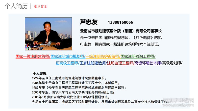 蘆忠友,一名參戰(zhàn)老兵,現(xiàn)任云南城市規(guī)劃建筑設(shè)計(jì)院(集團(tuán))有限公司董事長(zhǎng),正高級(jí)工程師,考取六個(gè)國(guó)家級(jí)證書(shū),并作為云南大學(xué)、云南經(jīng)濟(jì)管理學(xué)院客座教授。“葫蘆戰(zhàn)略定位”創(chuàng)始人、葫蘆商學(xué)院院長(zhǎng),曾獲“中國(guó)建筑文化杰出貢獻(xiàn)”獎(jiǎng),主導(dǎo)設(shè)計(jì)的“拉祜文化廣場(chǎng)”獲得第十六屆人類(lèi)與民族學(xué)建筑設(shè)計(jì)金獎(jiǎng)。他利用東方“萬(wàn)物之始、大道至簡(jiǎn)”的智慧,將中華文明“葫蘆文化”與西方的“戰(zhàn)略定位”相結(jié)合,并摸索出本土化、通俗化的“葫蘆戰(zhàn)略定位”。