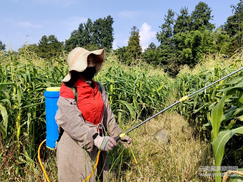 一大早,荷花鎮(zhèn)肖莊村民張景艷便來到家附近的拇指小玉米基地開啟一天的工作。只見她背起噴霧器,熟練地給即將成熟的玉米除蟲殺毒。