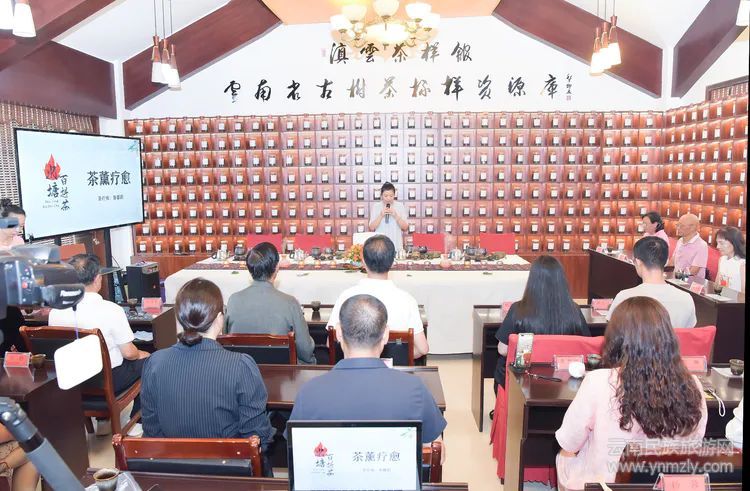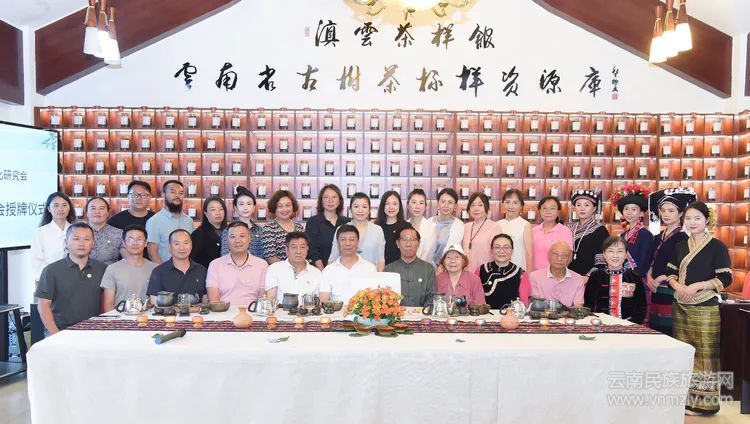 云南省民族茶文化研究會火塘茶專業(yè)委員會掛牌儀式在滇云茶樣館隆重舉行。