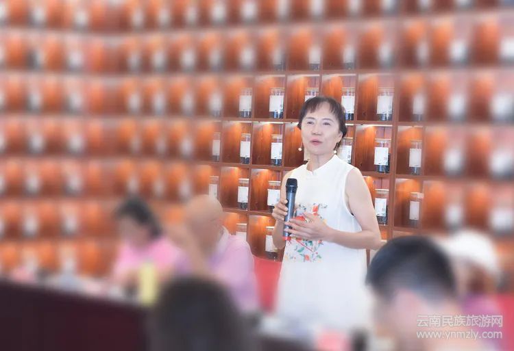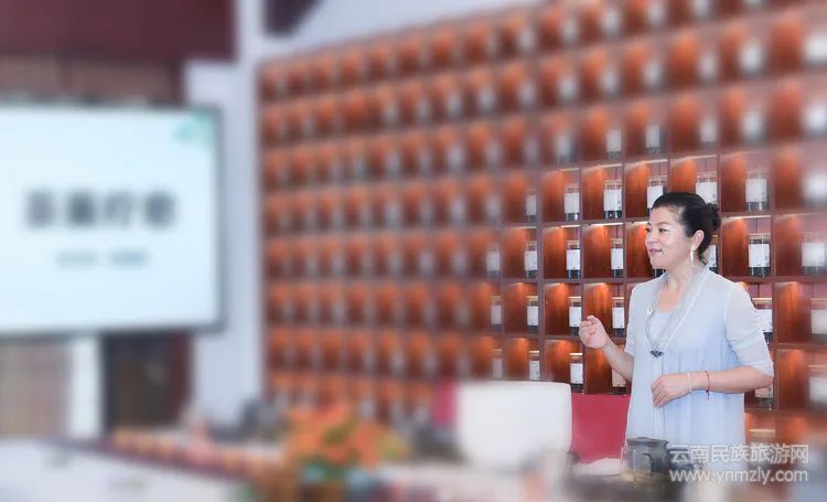 云南省民族茶文化研究會火塘茶專委會副主任魯馨陽,聲情并茂講授茶薰療愈課程。