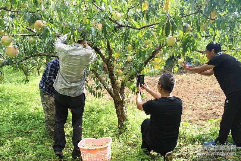 在木場鄉(xiāng)木場村厥壩自然村冬桃種植基地,百畝冬桃林郁郁蔥蔥。一顆顆身著粉紅“外衣”的成熟冬桃掛滿枝頭,微風(fēng)拂過,果香四溢,令人垂涎。這里的種植戶劉小梅正引導(dǎo)前來的顧客采摘果型美、肉質(zhì)好的冬桃。云南警官學(xué)院駐村工作隊長江濟(jì)趁周末也來“嘗鮮”,他稱贊道:“這桃子相當(dāng)脆甜,感覺比去年味道還好。駐村以來,我深感木場風(fēng)景優(yōu)美,桃花島很值得大家來賞景、品桃。”