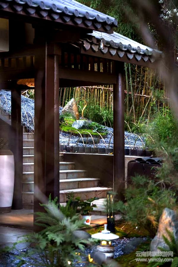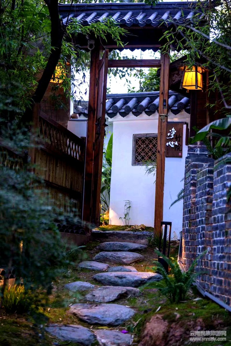 這不是在描繪某個寺院或公園的景致,而是一個叫“茶馬嵐滇酒店(凈心竹院民宿)”的地方,它就坐落在昆明西山茶馬花街中段,進入西山<碧雞秋色>牌坊的旁邊一個由村民住宅改造成的一個高低起伏層層疊疊的小院落,小院雖小,卻別具一格,進入小院,卻仿佛與世隔絕,進入了一個“世外桃源”。