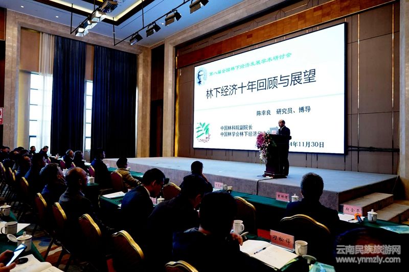 會(huì)上,中國(guó)工程院院士、云南農(nóng)業(yè)大學(xué)教授朱有勇,中國(guó)林學(xué)會(huì)副理事長(zhǎng)兼秘書(shū)長(zhǎng)、林下經(jīng)濟(jì)分會(huì)主任委員、中國(guó)林業(yè)科學(xué)研究院副院長(zhǎng)陳幸良,西南林業(yè)大學(xué)副校長(zhǎng)何霞紅,浙江農(nóng)林大學(xué)食品與健康學(xué)院院長(zhǎng)、中國(guó)林學(xué)會(huì)林下經(jīng)濟(jì)分會(huì)副主任委員斯金平,云南白藥集團(tuán)桂博翔分別向大會(huì)作了《林下中藥材的科技創(chuàng)新》《創(chuàng)新引領(lǐng)林下經(jīng)濟(jì)高質(zhì)量發(fā)展—林下經(jīng)濟(jì)十年回顧與展望》《林下資源保護(hù)利用的創(chuàng)新實(shí)踐》《讓每一口黃精都充滿自然之美》《數(shù)智云藥新模式中的林下資源經(jīng)濟(jì)高質(zhì)量發(fā)展思考》的主旨報(bào)告。報(bào)告緊扣主題,從林下經(jīng)濟(jì)助力鄉(xiāng)村振興方向與途徑、林下經(jīng)濟(jì)如何與“三綠”并舉、“四庫(kù)”聯(lián)動(dòng)相協(xié)同、林下經(jīng)濟(jì)與擴(kuò)大森林食物供給、林下經(jīng)濟(jì)理論與技術(shù)創(chuàng)新、林下經(jīng)濟(jì)政策與實(shí)踐、林下經(jīng)濟(jì)與森林康養(yǎng)新探索,林下生態(tài)種植、生態(tài)養(yǎng)殖技術(shù)模式創(chuàng)新,林藥、林菌、林菜、林蜂等典型林下經(jīng)濟(jì)發(fā)展關(guān)鍵技術(shù)研究等方面進(jìn)行了全面、詳細(xì)、精彩的分享,為林下產(chǎn)業(yè)發(fā)展提供了詳實(shí)的理論數(shù)據(jù)研究,展示了最新的科研成果,提供了新的技術(shù)指導(dǎo),指明了林下產(chǎn)業(yè)發(fā)展的新方向。
