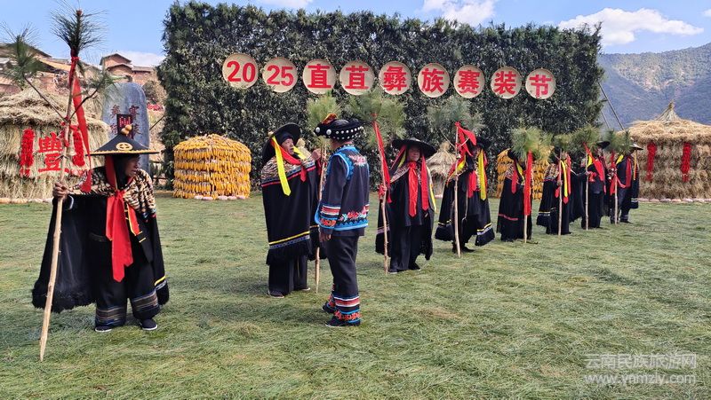 直苴村是“世界賽裝之源”,是國(guó)家級(jí)傳統(tǒng)村落,這里有世界上最古老的鄉(xiāng)村T臺(tái)。中午時(shí)分,四方八寨的群眾都會(huì)穿上傳統(tǒng)的節(jié)日盛裝,載歌載舞開(kāi)啟一年一度的賽裝盛會(huì)。在畢摩殺雞祭“啟西”,請(qǐng)神賜吉祥的祭祀結(jié)束后,賽裝活動(dòng)正式拉開(kāi)序幕,畢摩隊(duì)、老倌隊(duì)、老奶隊(duì)、漢子隊(duì)、媽媽隊(duì)、娃娃隊(duì)、少男少女隊(duì)紛紛上場(chǎng)展示他們獨(dú)特的舞姿和各具特色的彝族服飾,這是一場(chǎng)賽裝文化和民俗文化的盛宴,更是當(dāng)?shù)厝罕娦腋L鹈郎畹目駳g。