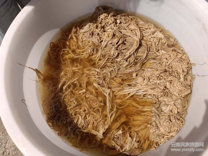 (2)泡構(gòu)皮。將買來(lái)的干構(gòu)皮放在流淌的清水中浸泡一夜使之韌軟。
