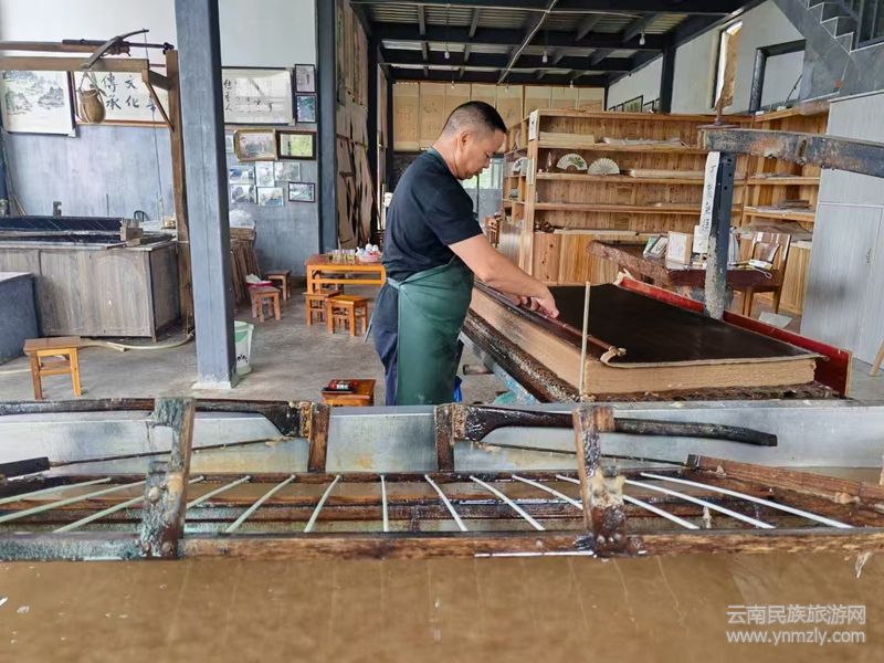清代以前生產(chǎn)原始,操作笨重,工藝粗糙落后,清寸開(kāi)泰《騰越鄉(xiāng)土志·物產(chǎn)》條目載:“構(gòu)皮含漿粉,綿而有筋,漚流水中,取出,刮出粗皮,錘析之,再漚,乃以甑蒸,更錘極細(xì),下灰缸泡濫如棉,以竹籮撈起,清水滌蕩,盡去灰質(zhì),碾研米漿,合(構(gòu))棉置缸中,同攪入化,用竹絲簾漾其面,輕提簾起,印板上層累有紙”,曬干成紙。“自購(gòu)構(gòu)而歸迄干成紙,前后手工計(jì)七十余次”,現(xiàn)已簡(jiǎn)化,形成固定的工藝流程,且有不同之處。