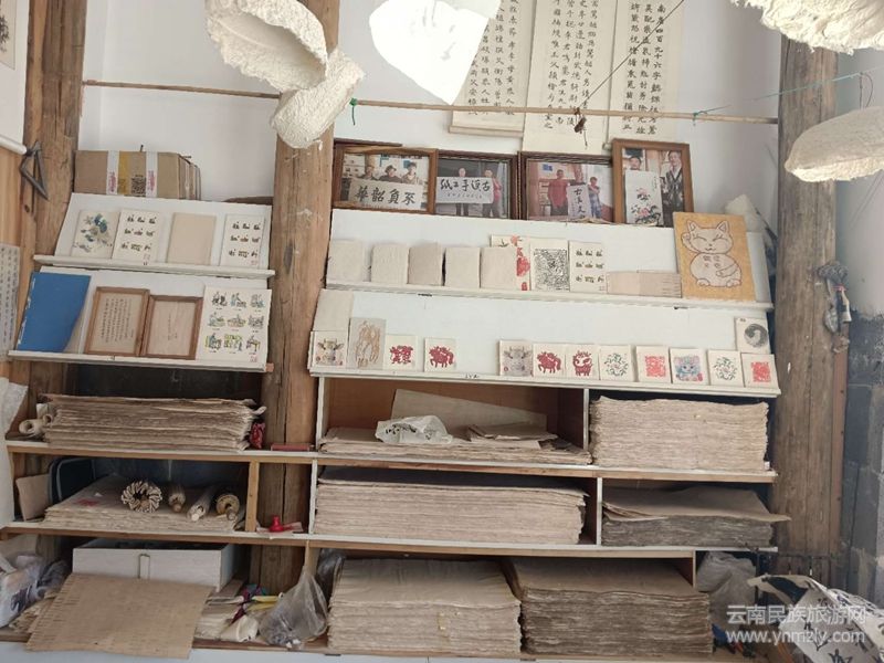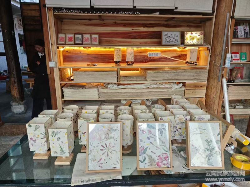 如今,手工抄紙除了用作傳統(tǒng)的書畫紙張、文本、包裝紙外,紙藝匠人們還創(chuàng)意制作了紙扇、臺(tái)燈、油紙傘等文創(chuàng)產(chǎn)品,實(shí)現(xiàn)了從單純?cè)旒埖缴a(chǎn)文創(chuàng)產(chǎn)品的轉(zhuǎn)變,并借助“互聯(lián)網(wǎng)”的東風(fēng),拓展了手工抄紙流通的市場(chǎng)與空間,主要通過(guò)當(dāng)?shù)氐闹谱鞴し?、文化體驗(yàn)區(qū)以及線上電商平臺(tái)等渠道進(jìn)行銷售。游客可以在高黎貢山手抄紙博物館、和順古鎮(zhèn)等地的體驗(yàn)區(qū)內(nèi)了解并購(gòu)買手抄紙,同時(shí)也可以通過(guò)電商平臺(tái)進(jìn)行遠(yuǎn)程購(gòu)買。2024年新莊手工抄紙產(chǎn)量2000余萬(wàn)張,產(chǎn)值800余萬(wàn)元,手工抄紙及文創(chuàng)產(chǎn)品遠(yuǎn)銷意大利、德國(guó)、韓國(guó)等多個(gè)國(guó)家。2019年,手工抄紙被納入全市重點(diǎn)旅游項(xiàng)目,在各級(jí)的扶持下,新莊社區(qū)新建成了一個(gè)造紙文化園區(qū)、一個(gè)創(chuàng)意功能區(qū),為游客提供一站式服務(wù)。